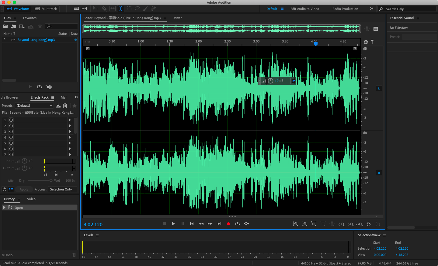 Again, the methods shown above is merely a simplified way of removing vocals. To get perfect results, we might need other Audition’s plugins, or softwares, such as iZotope’s Ozone 8, or Antares’ Soundsoap+ 5.