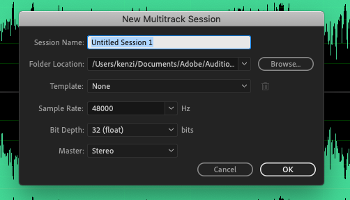 Then we create a Multitrack session. It’s Okay to just use the default values.