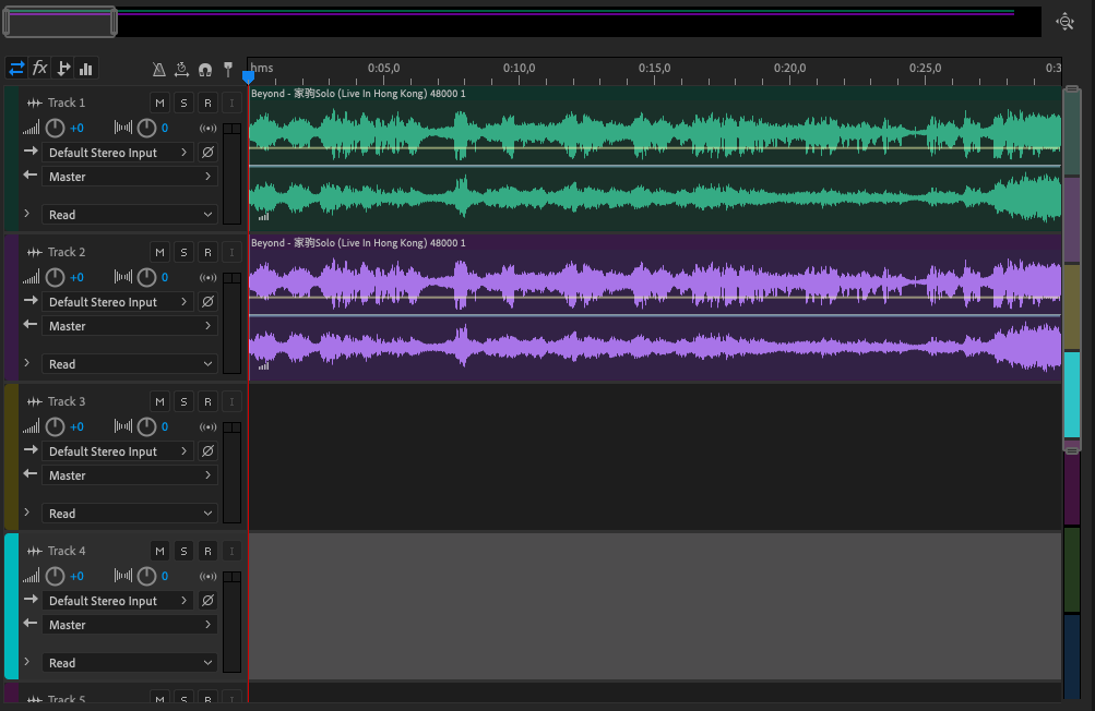 Then we are done with Track 1. The reason to create a multitrack session instead of editing directly on the original audio file is that, CCE can hurt the quality of the audio file, and sometimes the lowrange part will be blurry and muffuled. So we add one more track and do a little bit of the repair work.