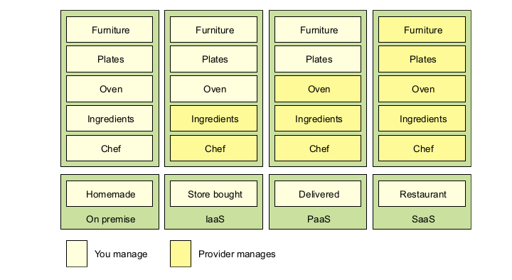 - IaaS: Buy a pre-made meal, then heat up in a microwave